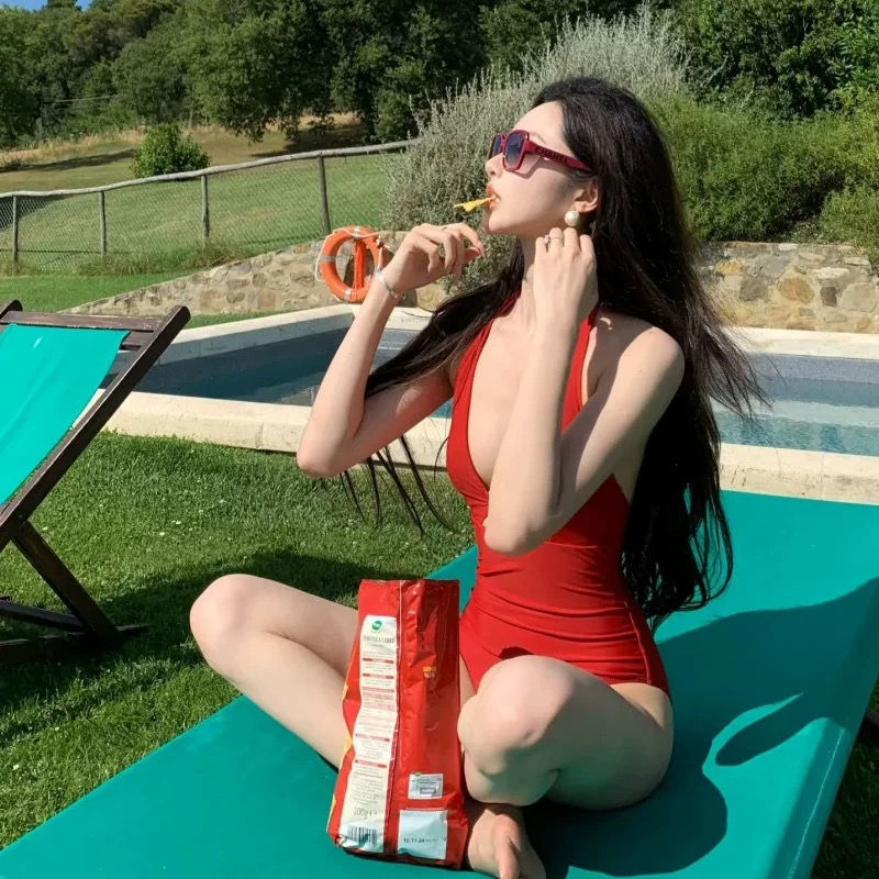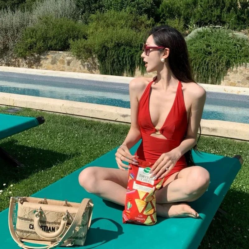 野玫瑰性感复古辣妹镂空显身材连体泳衣